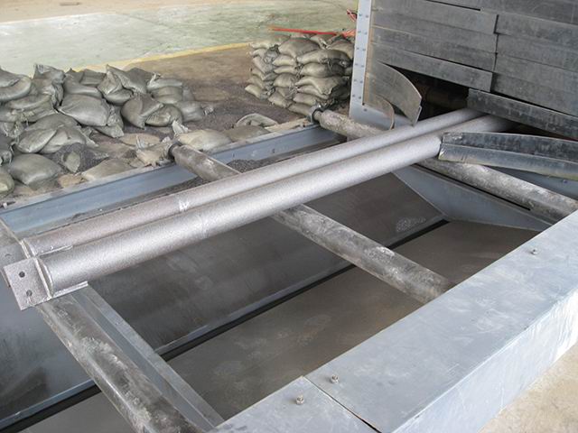 后工件表面表面的光潔度和粗糙度符合有關的標準規定。小口徑的鋼管使用內壁噴丸機,鋼管內壁噴丸處理線,主要包括移動臺車,砂斗,噴砂罐,噴槍,噴槍承載車,鋼管承載系統,底部彈丸